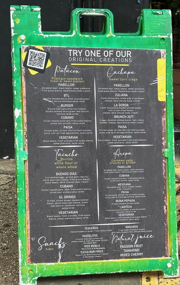 Smashed plantain sandwich stuffed with you choose of 2 meats (grilled meats are extra), fried queso blanco, ketchup, green leaf lettuce, tomatoes, & salsa verde.