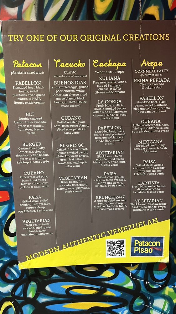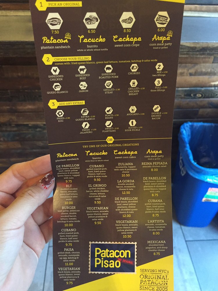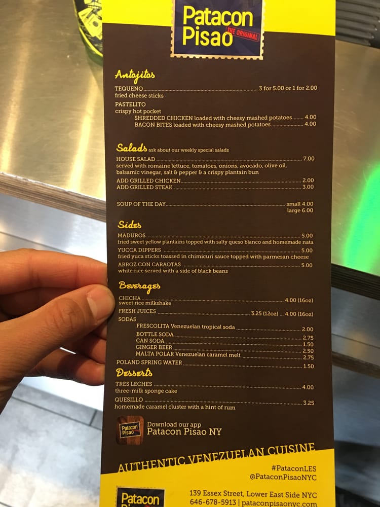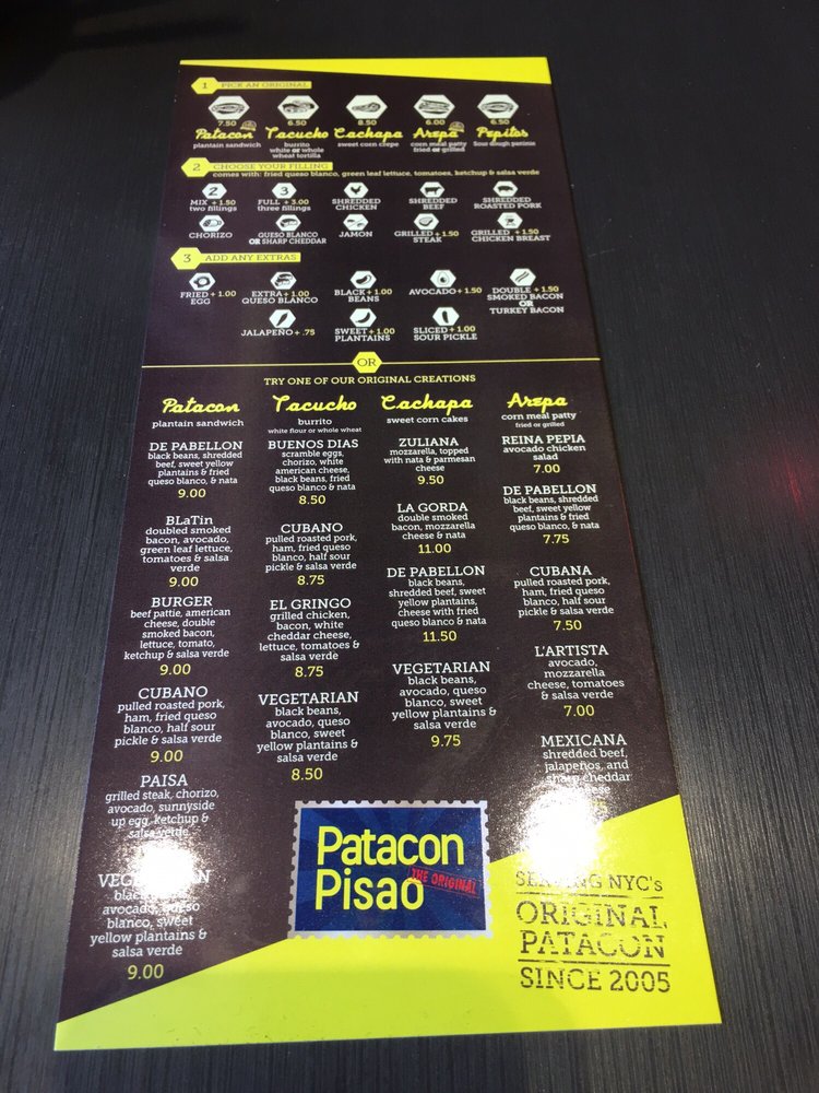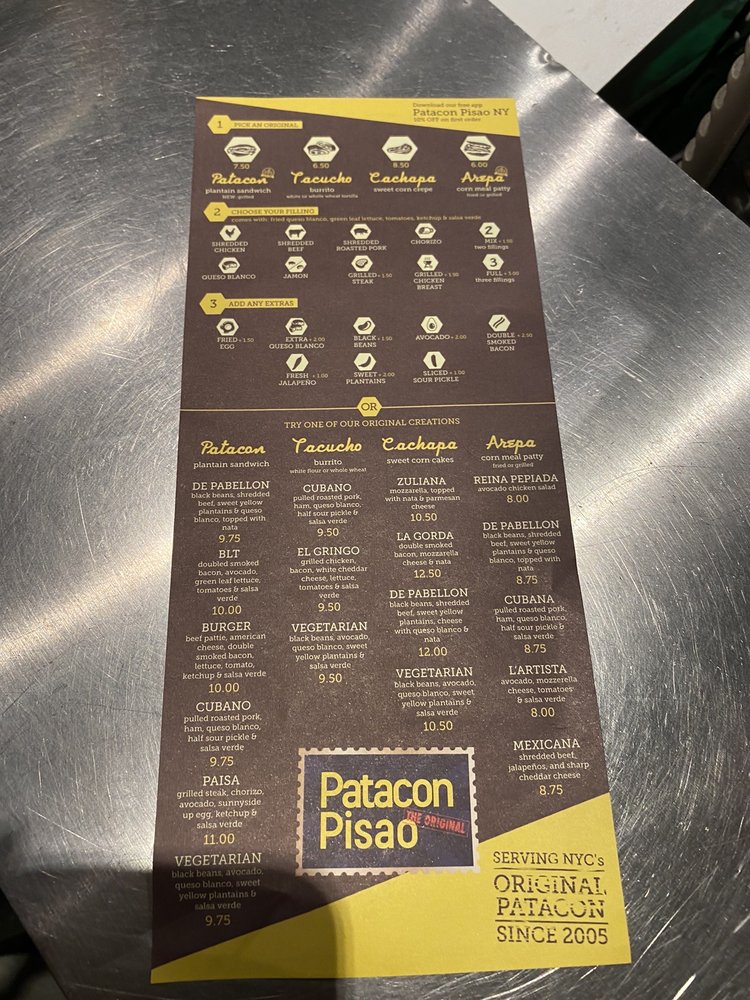 "Introducing the menu at Patacon Pisao, a Latinx-owned gem in New York, offering a unique experience to indulge in Venezuelan street food. The menu features must-try dishes like the Shredded Beef and Chicken Pastelito, Tamarind and Passionfruit Juices, and the fan-favorite Smashed Plantain Sandwiches. Customer reviews rave about the flavorful vegetarian Tacucho, generous portions of Pulled Pork Patacon, and the delectable Arepa dishes. The cozy yet bustling atmosphere, friendly staff, and quick service make dining at Patacon Pisao a delightful experience. With options for delivery, takeout, and catering, this hidden gem with limited vegetarian choices is a must-visit for those craving authentic Latin American flavors."